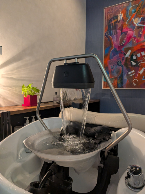 頭浸浴では、温かいお湯を一定のリズムで頭全体にかけ流し、頭皮をじんわり温めながらリラックス状態へ導きます。